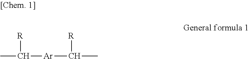 - Ar represents a phenylene group or a biphenylene group and Rs each independently represent a hydrogen atom or a methyl group