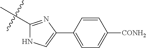 - ABLQLMZZGPGYTM-UHFFFAOYSA-N CS(C)c([nH]1)nc(-c(cc2)ccc2C(N)=O)c1Cl Chemical compound CS(C)c([nH]1)nc(-c(cc2)ccc2C(N)=O)c1Cl ABLQLMZZGPGYTM-UHFFFAOYSA-N 0.000 description 3