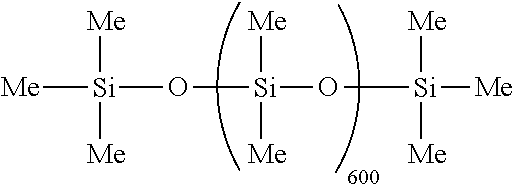 - F-1: organopolysiloxane of the following formula having a viscosity of 5 Pa·s at 25° C.