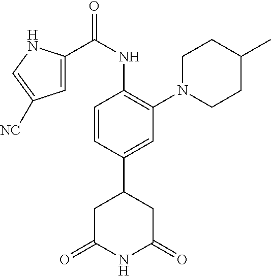- NXMVVGDGSDQDRZ-UHFFFAOYSA-N CC(C)(CC1)CC=C1c1nc(C(CC(N2)=O)CC2=O)ccc1NC(c1nc(C#N)c[nH]1)=O Chemical compound CC(C)(CC1)CC=C1c1nc(C(CC(N2)=O)CC2=O)ccc1NC(c1nc(C#N)c[nH]1)=O NXMVVGDGSDQDRZ-UHFFFAOYSA-N 0.000 description 1
