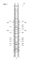 Still more, the inclination of the pair of engagement chains 211 increases even more and the buckling strength also drops in the condition in which the horizontal component F of the load is increased by continuously causing the load to act on the pair of once inclined engagement chains 211 from an upper part to a lower part in the vertical direction. Therefore, the lifting apparatus described above has other problems that it generates a large amount of work to assemble the apparatus because it requires reinforcing devices for reinforcing the pair of engagement chains 211 be mounted. Also, there is a need for an increased number of parts in the apparatus and an increased size of the engagement chains 211, i.e., a cross-sectional area of the pair of engagement chains 211 integrated by engaging with each other, to assure predetermined buckling strength.