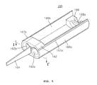 The driving body 162 has an oval cross-section that corresponds to the inner space of the case 30. The driving body 162 includes the first and second drive slots 162 a and 162 b, which extend in the longitudinal direction of the case 30. The rear ends of the first and second guide bars 16 and 26 are inserted in the first and second drive slots 162 a and 162 b, respectively. Referring to FIGS. 6 and 7, each of inner surfaces of the first and second drive slots 162 a and 162 b has a straight line part that extends approximately in the longitudinal direction of the case 30, and an inclination part that is inclined outward at an end of the straight line part. Accordingly, a diameter of the inclination part is greater than that of the straight line part. The first and second guide bars 16 and 26 are inserted in the first and second drive slots 162 a and 162 b, and the inner surfaces of the first and second drive slots 162 a and 162 b displace the first and second guide bars 16 and 26, which will be described later. At this point, the inclination parts prevent quick displacements of the first and second guide bars 16 and 26.