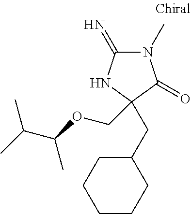- KNTSERQNVMDNIE-FBMWCMRBSA-N CCCCN1CCCC([C@@]2(CCCC)NC(=N)N(C)C2=O)C1 Chemical compound CCCCN1CCCC([C@@]2(CCCC)NC(=N)N(C)C2=O)C1 KNTSERQNVMDNIE-FBMWCMRBSA-N 0.000 description 2