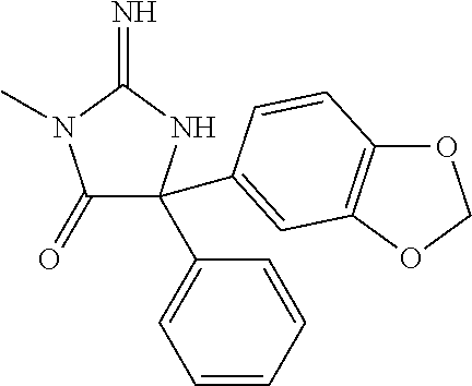 - YQSUOEDJJXEQDE-UHFFFAOYSA-N CC(C)CC1(C)NC(=N)N(CC2=CC(C3=C/C=C4\OCO\C4=C\3)=CC=C2)C1=O Chemical compound CC(C)CC1(C)NC(=N)N(CC2=CC(C3=C/C=C4\OCO\C4=C\3)=CC=C2)C1=O YQSUOEDJJXEQDE-UHFFFAOYSA-N 0.000 description 2