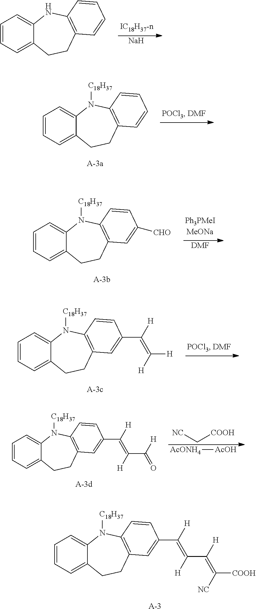 - NLYVGQAWWPTJLW-WNZMMJSISA-N CCCCC(CC)CN1C2=CC=CC=C2CCC2=C1C=CC(/C=C/C=C(/C)OC=O)=C2.CCCCCCCCCCN1C2=CC=CC=C2CCC2=C1C=CC(/C=C/C=C(/C)OC=O)=C2.CCCCCCN1C2=CC=C(C=C(C3=CC=CC=C3)C3=CC=CC=C3)C=C2CCC2=C1C=CC(/C=C/C=C1/S/C(=C3/SC(=S)N(CC)C3=O)N(COC=O)C1=O)=C2.CCCCCCN1C2=CC=CC=C2CCC2=C1C=CC(/C=C(C#N)\C=C1/S/C(=C3/SC(=S)N(CC)C3=O)N(COC=O)C1=O)=C2.CCCCCCN1C2=CC=CC=C2CCC2=C1C=CC(/C=C(CCCCC)/C(CCCCC)=C(/C=C(/C)OC=O)CCCCC)=C2.CCCCCCN1C2=CC=CC=C2CCC2=C1C=CC(/C=C/C=C1/S/C(=C(\C)C(=O)O)N(COC=O)C1=O)=C2.CCN1C2=CC=CC=C2CCC2=C1C=CC(/C=C/C=C(/C)OC=O)=C2.[C-]#[N+]/C(=C/C(=C\C1=CC2=C(C=C1)N(CCCCCCCCCC)C1=CC=CC=C1CC2)C1=CC=CC=C1)C(=O)O Chemical compound CCCCC(CC)CN1C2=CC=CC=C2CCC2=C1C=CC(/C=C/C=C(/C)OC=O)=C2.CCCCCCCCCCN1C2=CC=CC=C2CCC2=C1C=CC(/C=C/C=C(/C)OC=O)=C2.CCCCCCN1C2=CC=C(C=C(C3=CC=CC=C3)C3=CC=CC=C3)C=C2CCC2=C1C=CC(/C=C/C=C1/S/C(=C3/SC(=S)N(CC)C3=O)N(COC=O)C1=O)=C2.CCCCCCN1C2=CC=CC=C2CCC2=C1C=CC(/C=C(C#N)\C=C1/S/C(=C3/SC(=S)N(CC)C3=O)N(COC=O)C1=O)=C2.CCCCCCN1C2=CC=CC=C2CCC2=C1C=CC(/C=C(CCCCC)/C(CCCCC)=C(/C=C(/C)OC=O)CCCCC)=C2.CCCCCCN1C2=CC=CC=C2CCC2=C1C=CC(/C=C/C=C1/S/C(=C(\C)C(=O)O)N(COC=O)C1=O)=C2.CCN1C2=CC=CC=C2CCC2=C1C=CC(/C=C/C=C(/C)OC=O)=C2.[C-]#[N+]/C(=C/C(=C\C1=CC2=C(C=C1)N(CCCCCCCCCC)C1=CC=CC=C1CC2)C1=CC=CC=C1)C(=O)O NLYVGQAWWPTJLW-WNZMMJSISA-N 0.000 description 1