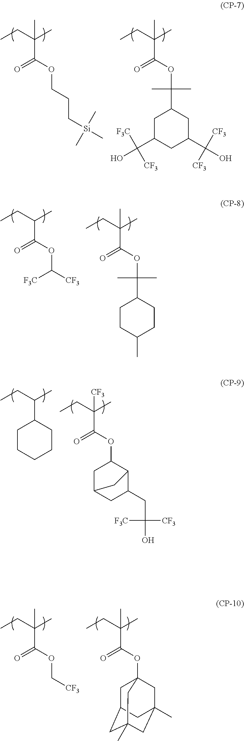 - a pattern forming method comprising steps of subjecting the resist film described in 9 to immersion exposure and developing the immersion-exposed resist film.