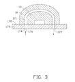 The second encapsulation 18 has a configuration similar to that of the first encapsulation 13 but has a size larger than that of the first encapsulation 13. The second encapsulation 18 encloses the first encapsulation 13. More specifically, the second encapsulation 18 includes an annular second planar mounting surface 181 facing and adjacent to the substrate 11, a second convex light exit surface 182 connected to an outer periphery of the second mounting surface 181 and a second light incident surface 184 connected to an inner periphery of the second mounting surface 181. The second light incident surface 184 is concaved from the inner periphery of the second mounting surface 181 towards the second light exit surface 182. A receiving space 183 surrounded by the second light incident surface 184 is defined in a middle of the second encapsulation 18. The receiving space 183 has a cylindrical lower portion and a domed upper portion.