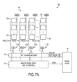 Referring first to FIG. 7A, imager 700 includes pixel array 56 which includes multiple pixel circuits, each generally designated as 100. Each column of pixel array 56 provides a pixel output, shown as PIXOUT. For example, the first column provides PIXOUT 0, the next column provides PIXOUT 1, and the third column provides PIXOUT 2. There exists a PIXOUT for each column in the pixel array. The last column is shown designated as PIXOUT n.