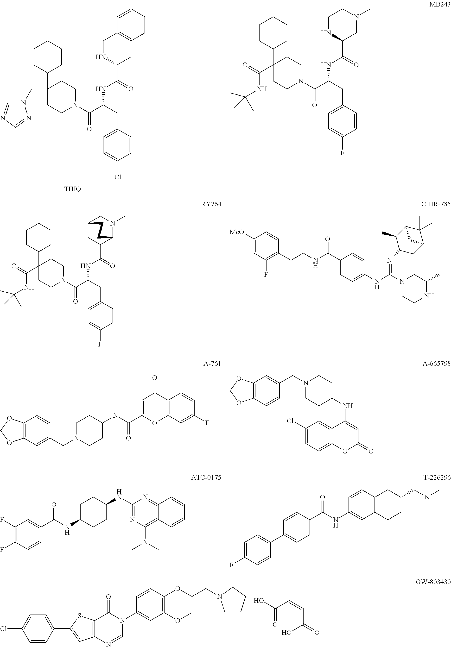 - KRFWCUIBXKOSSW-ZBIJMCGCSA-N CC1=CC(F)=C(CCNC(=O)C2=CC=C(N/C(=N/C3C[C@H]4C[C@@H]([C@@H]3C)C4(C)C)N3CCN[C@@H](C)C3)C=C2)C=C1.CN(C)C1=C2C=CC=CC2=NC(C[C@H]2CC[C@@H](NC(=O)C3=CC(F)=C(F)C=C3)CC2)=N1.CN(C)C[C@@H]1CCC2=C(C=CC(NC(=O)C3=CC=C(C4=CC=C(F)C=C4)C=C3)=C2)C1.CN1CCN[C@H](C(=O)N[C@H](CC2=CC=C(F)C=C2)C(=O)N2CCC(C(=O)NC(C)(C)C)(C3CCCCC3)CC2)C1.CN1C[C@@H]2CC[C@H]1C(C(=O)N[C@H](CC1=CC=C(F)C=C1)C(=O)N1CCC(C(=O)NC(C)(C)C)(C3CCCCC3)CC1)C2.COC1=C(OCCN2CCCC2)C=CC(N2C=NC3=C(SC(C4=CC=C(Cl)C=C4)=C3)C2=O)=C1.O=C(N[C@H](CC1=CC=C(Cl)C=C1)C(=O)N1CCC(CN2C=NC=N2)(C2CCCCC2)CC1)[C@H]1CC2=C(C=CC=C2)CN1.O=C(O)/C=C\C(=O)O.O=C1C=C(C(=O)CC2CCN(CC3=CC4=C(C=C3)OCO4)CC2)OC2=C1C=CC(F)=C2.O=C1C=C(NC2CCN(CC3=CC4=C(C=C3)OCO4)CC2)C2=CC(Cl)=CC=C2O1.[3H][IH]C Chemical compound CC1=CC(F)=C(CCNC(=O)C2=CC=C(N/C(=N/C3C[C@H]4C[C@@H]([C@@H]3C)C4(C)C)N3CCN[C@@H](C)C3)C=C2)C=C1.CN(C)C1=C2C=CC=CC2=NC(C[C@H]2CC[C@@H](NC(=O)C3=CC(F)=C(F)C=C3)CC2)=N1.CN(C)C[C@@H]1CCC2=C(C=CC(NC(=O)C3=CC=C(C4=CC=C(F)C=C4)C=C3)=C2)C1.CN1CCN[C@H](C(=O)N[C@H](CC2=CC=C(F)C=C2)C(=O)N2CCC(C(=O)NC(C)(C)C)(C3CCCCC3)CC2)C1.CN1C[C@@H]2CC[C@H]1C(C(=O)N[C@H](CC1=CC=C(F)C=C1)C(=O)N1CCC(C(=O)NC(C)(C)C)(C3CCCCC3)CC1)C2.COC1=C(OCCN2CCCC2)C=CC(N2C=NC3=C(SC(C4=CC=C(Cl)C=C4)=C3)C2=O)=C1.O=C(N[C@H](CC1=CC=C(Cl)C=C1)C(=O)N1CCC(CN2C=NC=N2)(C2CCCCC2)CC1)[C@H]1CC2=C(C=CC=C2)CN1.O=C(O)/C=C\C(=O)O.O=C1C=C(C(=O)CC2CCN(CC3=CC4=C(C=C3)OCO4)CC2)OC2=C1C=CC(F)=C2.O=C1C=C(NC2CCN(CC3=CC4=C(C=C3)OCO4)CC2)C2=CC(Cl)=CC=C2O1.[3H][IH]C KRFWCUIBXKOSSW-ZBIJMCGCSA-N 0.000 description 1