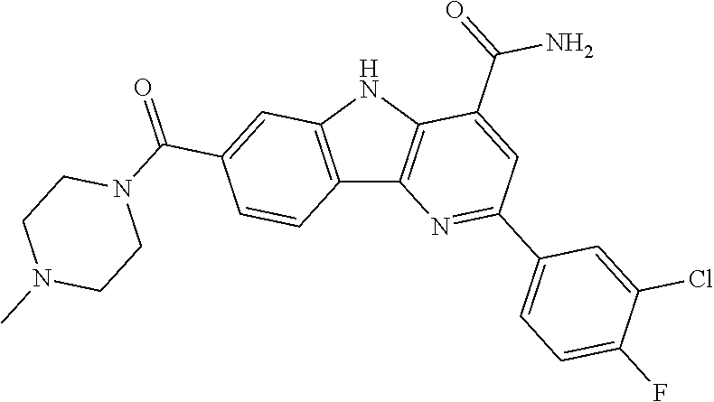 | 564 | | 3-(3-chloro-4-pyridinyl)-7-(4- morpholinylcarbonyl)-9H- carbazole-1-carboxamide | 3.36 | 435 |