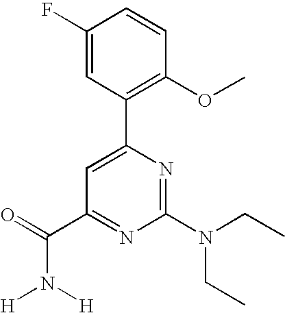 - PIKXLSZTXBDHRR-UHFFFAOYSA-N [H]N([H])C(=O)C1=CC(C2=C(OCC)C=CC=C2)=NC(N(CC)CC)=N1 Chemical compound [H]N([H])C(=O)C1=CC(C2=C(OCC)C=CC=C2)=NC(N(CC)CC)=N1 PIKXLSZTXBDHRR-UHFFFAOYSA-N 0.000 description 2