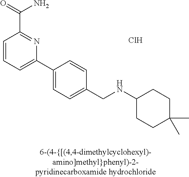 Other representative salts include acetate, benzenesulfonate, benzoate, bicarbonate, bisulfate, bitartrate, borate, calcium edetate, camsylate, carbonate, clavulanate, citrate, dihydrochloride, edisylate, estolate, esylate, fumarate, gluceptate, gluconate, glutamate, glycollylarsanilate, hexylresorcinate, hydrobromide, hydrochloride, hydroxynaphthoate, iodide, isethionate, lactate, lactobionate, laurate, malate, maleate, mandelate, mesylate, methylsulfate, monopotassium maleate, mucate, napsylate, nitrate, oxalate, pamoate (embonate), palmitate, pantothenate, phosphate/diphosphate, polygalacturonate, salicylate, stearate, subacetate, succinate, sulfate, tannate, tartrate, teoclate, tosylate, and valerate salts.