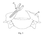FIG. 5 is a view of an embodiment wherein portions of a vertebra have been truncated prior to trans-lamina delivery and positioning of the fixation assembly.
