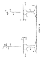 FIG. 4 is a diagrammatic depiction of parallel, transverse rail sections depicted with negative rail cant.