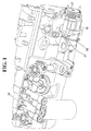 FIG. 1 is a partial perspective view of an engine block and lubricating system, including an oil pump, oil filter base and oil filter.