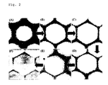 - a) Production of a two dimensional mask that consists of spherical monodisperse polystyrene particles of sizes from 200 nm to 7000 nm. This production involves the controlled aggregation of the particles between solvents of different surface behaviour for the precise structuring of the two dimensional mask. The final morphology of the mask is determined using temperature and mechanical treatment to give triangles, roots, dots or others.