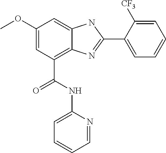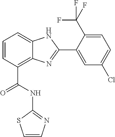 In another embodiment, the compound of the invention is selected from any one of Compound numbers 202, 203, 208, 226, 243, 247, 254, 262, 269, 287, 288, 289, 290, 295, 300, 302, 304, 312, 313, 315, 316, 317, 319, 321, 323, 327, 328, 340, 343, 344, 345, 346, 354, 356, 357, 358, 359, 360, 361, 362, 368, 369, 370, 371, 372, 376, 377, 379, 380, 381, 382, 394, 395, 396, 398, 399, 409, 411, 412, 413, 414, 430, 432, 440, 446, 448, 451, 452, 455, 456, 457, 458, 461, 464, 465, 478, 479, 480, 481, 492, 493, 494, 495, 514, 515, 516, 531, 540, 541, 549, 550, 551, 552, 553, 554, 555, 556, 557, 558, 559, 560, 561, 573, 574, 575, 589, 590, 591, 592, 593, 594, 595, 596, 601, 603, 604, 620, 622, 623, 628, 629, 630, 631, 640, 641, 642, 643, 644, 645, 646, 647, 672, 674, 675, 677, 678, 679, 680, 681, 689, 690, 691, 692, 698, 699, 700, 701, 706, 717, 718, 719, 720, 721, 722, 723, 724, 725, 734, 735, 736, 737, 740, 741, 742, 743, 744, 745, 746, 749, 751, 767, 768, 769, 770, 774, 775, 776, 782, 785, 786, 789, 798, 811, 817, 818, 819, 820, 824, 825, 827, 829, 831, 832, 833, 834, 836, 839, 840, 841, 845, 847, 849, 851, 852, 853, 854, 855, 862, 863, 865, 866, 867, or 868 from Table 1, above.