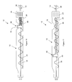20. The method according to clause 19, wherein the variable pitch helical braking element comprises a first helical braking element portion engageable with the carriage during an initial movement of the carriage and a second helical braking element portion engageable with the carriage during subsequent movement of the carriage, the first and second helical braking element portions having first and second pitches, respectively, the first pitch being shorter than the second pitch, whereby the moving step comprises: