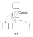 One property that is used in the examples illustrated herein is the OutgoingEdges property. This property defines the number of edges leaving a shape. In the present example, values of this property may be: 0, 1, or n, where n is a positive integer number. This property may have a default value assigned, such as 0, 1 or some other default value. Examples are illustrated in FIG. 1. FIG. 1 illustrates a source block or node 102, a decision block or node 104, and three activity blocks or nodes 106, 108 and 110. An OutgoingEdges property for the source node 102 may specify a property value of 1. An OutgoingEdges property for the decision node 104 may specify a property value of 3. An OutgoingEdges property for each of the activity nodes may specify property values of 0.