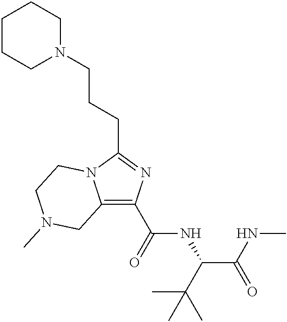 Aminosulfonylalkyl—a radical of the formula —NHSO2-alkyl. Sulfonyl-aminoalkyl—a linking group of the formula —SO2NH-alkyl- or a radical of the formula —SO2N(alkyl)2. Alkylcarbamoyl—a linking group of the formula -alkyl-C(O)NH— or a radical of the formula -alkyl-C(O)NH2. Carbamoylalkyl—a linking group of the formula —NHC(O)-alkyl- or a radical of the formula —NHC(O)-alkyl. Halogen—fluoro, chloro, bromo or iodo. Carboxyl—a radical of the formula —COOH. Hydroxyl—a radical of the formula —OH. Cyano—a radical of the formula —C≡N. Oxo—a radical of the formula ═O in which the oxygen atom is double bonded. Amino—a radical of the formula —NH2 or a linking group having the formula —NH—. Aminoalkyl—a radical of the formula —NH-alkyl or —N(alkyl)2.