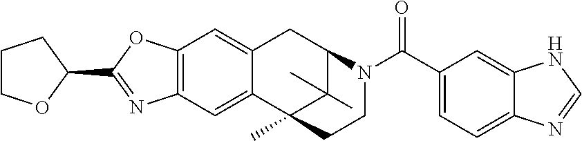 - FTIGRMDCQNDXFT-IERDGZPVSA-N CC(C)(C)C1=NC2=C(C=C3C(=C2)C[C@H]2N(C(=O)C(F)(F)F)CC[C@]3(C)C2(C)C)N1 Chemical compound CC(C)(C)C1=NC2=C(C=C3C(=C2)C[C@H]2N(C(=O)C(F)(F)F)CC[C@]3(C)C2(C)C)N1 FTIGRMDCQNDXFT-IERDGZPVSA-N 0.000 description 2