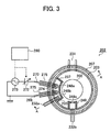 The controller 280 is connected to the first and second mass flow controllers 241 a, 241 b, the first to fourth valves 243 a, 243 b, 243 c and 243 d, the heater 207, the vacuum pump 246, the boat rotating mechanism 267, the boat elevating mechanism (not shown), the high-frequency power supply 273 and the matching unit 272. The controller 280 performs the flow amount adjustment of the first and second mass flow controllers 241 a, 241 b, the opening/closing operation of the first to third valves 243 a, 243 b, 243 c, the opening/closing and pressure adjusting operations of the fourth valve 243 d, the temperature adjustment of the heater 207, the start/stop of the vacuum pump 246, the rotational speed adjustment of the boat rotating mechanism 267, the elevating operation control of the boat elevating mechanism, the power supply control of the high-frequency power supply 273 and the impedance control of the matching unit 272.