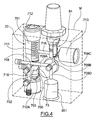 The conduit 80 communicates via the passage 72 with an air flow regulator cock 85, the exit of which opens via a conduit 810 into the modular element 88. The cock 85 also presents a needle valving element 85A with a head 85B enabling it to be controlled.