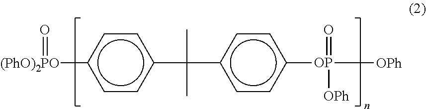 (b) a liquid bis-phenol A-bis(diphenyl phosphate) of the general formula (2):