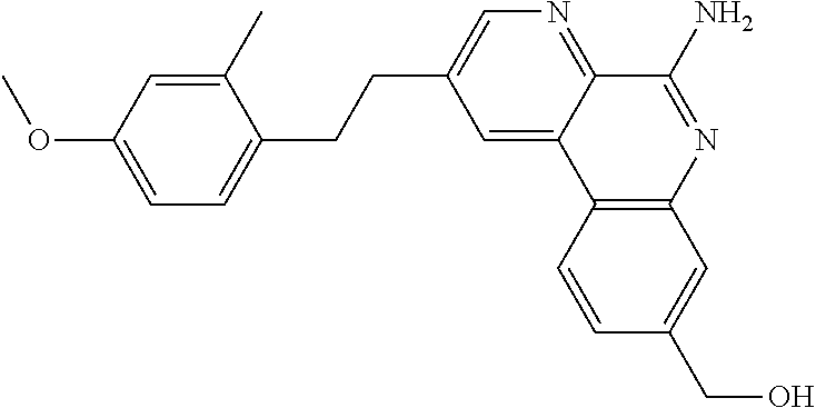 2-methylbenzo[f][1,7]naphthyridin-5-amine; 2-propylbenzo[f][1,7]naphthyridin-5-amine; 2-ethylbenzo[f][1,7]naphthyridin-5-amine; 2-(3-methoxyphenethyl)benzo[f][1,7]naphthyridin-5-amine; 8-methylbenzo[f][1,7]naphthyridin-5-amine; 8-methyl-2-phenethylbenzo[f][1,7]naphthyridin-5-amine; methyl 5-aminobenzo[f][1,7]naphthyridine-3-carboxylate; (5-aminobenzo[f][1,7]naphthyridin-3-yl)methanol; benzo[f][1,7]naphthyridin-5-amine; (5-aminobenzo[f][1,7]naphthyridin-8-yl)methanol; 2-(2-methylphenethyl)benzo[f][1,7]naphthyridin-5-amine; 2-(3-methylphenethyl)benzo[f][1,7]naphthyridin-5-amine; 2-(4-methylphenethyl)benzo[f][1,7]naphthyridin-5-amine; 8-chlorobenzo[f][1,7]naphthyridin-5-amine; ethyl 5-aminobenzo[f][1,7]naphthyridine-9-carboxylate; 8-methoxybenzo[f][1,7]naphthyridin-5-amine; 8-(trifluoromethyl)benzo[f][1,7]naphthyridin-5-amine; 8-fluorobenzo[f][1,7]naphthyridin-5-amine; 3-methylbenzo[f][1,7]naphthyridin-5-amine; 3-fluorobenzo[f][1,7]naphthyridin-5-amine; 2-phenethylbenzo[f][1,7]naphthyridin-5-amine; 8-methyl-2-(2-(naphthalen-1-yl)ethyl)benzo[f][1,7]naphthyridin-5-amine; 8-methyl-2-(2-(naphthalen-2-yl)ethyl)benzo[f][1,7]naphthyridin-5-amine; 4-(2-(5-amino-8-methylbenzo[f][1,7]naphthyridin-2-yl)ethyl)benzoic acid; 3-(2-(5-amino-8-methylbenzo[f][1,7]naphthyridin-2-yl)ethyl)benzoic acid; 2-(3-chlorophenethyl)-8-methylbenzo[f][1,7]naphthyridin-5-amine; 2-(2-chlorophenethyl)-8-methylbenzo[f][1,7]naphthyridin-5-amine; (3-(2-(5-amino-8-methylbenzo[f][1,7]naphthyridin-2-yl)ethyl)phenyl)methanol; 2-(4-chlorophenethyl)-8-methylbenzo[f][1,7]naphthyridin-5-amine; 2-(4-butylphenethyl)benzo[f][1,7]naphthyridin-5-amine; 2-(4-butylphenethyl)-8-methylbenzo[f][1,7]naphthyridin-5-amine; 2-(4-propylphenethyl)benzo[f][1,7]naphthyridin-5-amine; 2-(4-(trifluoromethyl)phenethyl)benzo[f][1,7]naphthyridin-5-amine; 2-(2,5-dimethylphenethyl)-8-methylbenzo[f][1,7]naphthyridin-5-amine; 8-methyl-2-(4-propylphenethyl)benzo[f][1,7]naphthyridin-5-amine; 8-methyl-2-(2,4,5-trimethylphenethyl)benzo[f][1,7]naphthyridin-5-amine; 2-(2,5-dimethylphenethyl)benzo[f][1,7]naphthyridin-5-amine; 2-(4-isopropylphenethyl)-8-methylbenzo[f][1,7]naphthyridin-5-amine; 2-(4-heptylphenethyl)-8-methylbenzo[f][1,7]naphthyridin-5-amine; 2-(4-isobutoxyphenethyl)-8-methylbenzo[f][1,7]naphthyridin-5-amine; 2-(4-((2-methoxyethoxy)methoxy)phenethyl)-8-methylbenzo[f][1,7]naphthyridin-5-amine; 8-methyl-2-(4-(2-phenoxyethoxy)phenethyl)benzo[f][1,7]naphthyridin-5-amine; 8-methyl-2-(4-(4-phenylbutoxy)phenethyl)benzo[f][1,7]naphthyridin-5-amine; 2-(4-(allyloxy)phenethyl)-8-methylbenzo[f][1,7]naphthyridin-5-amine; 8-methyl-2-(4-(3-phenylpropoxy)phenethyl)benzo[f][1,7]naphthyridin-5-amine; 2-(4-(heptan-4-yloxy)phenethyl)-8-methylbenzo[f][1,7]naphthyridin-5-amine; 8-methyl-2-(4-(4-methylpent-3-enyloxy)phenethyl)benzo[f][1,7]naphthyridin-5-amine; 2-(4-(2-cyclohexylethoxy)phenethyl)-8-methylbenzo[f][1,7]naphthyridin-5-amine; 2-(4-isopropoxyphenethyl)-8-methylbenzo[f][1,7]naphthyridin-5-amine; 2-(4-(3,3-dimethylbutoxy)phenethyl)-8-methylbenzo[f][1,7]naphthyridin-5-amine; 8-(2-cyclopropylethyl)-2-(4-(dimethylamino)phenethyl)benzo[f][1,7]naphthyridin-5-amine; 8-(2-cyclopropylethyl)-2-(2,4-dimethylphenethyl)benzo[f][1,7]naphthyridin-5-amine; N-(4-(2-(5-amino-8-methylbenzo[f][1,7]naphthyridin-2-yl)ethyl)phenyl)acetamide; N-(4-(2-(5-aminobenzo[f][1,7]naphthyridin-2-yl)ethyl)phenyl)acetamide; N-(4-(2-(5-amino-8-methylbenzo[f][1,7]naphthyridin-2-yl)ethyl)phenyl)-4-methylbenzenesulfonamide; 3-methyl-9-p-tolyl-9,10-dihydrobenzo[f]furo[2,3-b][1,7]naphthyridin-6-amine; 4-(2-(5-amino-8-methylbenzo[f][1,7]naphthyridin-2-yl)ethyl)-3-methylbenzonitrile; 4-(2-(5-amino-8-methylbenzo[f][1,7]naphthyridin-2-yl)ethyl)-N-(2-aminoethyl)-3-methylbenzamide; 8-methyl-2-(2-methyl-4-(1H-tetrazol-5-yl)phenethyl)benzo[f][1,7]naphthyridin-5-amine; methyl 2-(4-(2-(5-amino-8-methylbenzo[f][1,7]naphthyridin-2-yl)ethyl)-3-methylbenzamido)-4-methylpentanoate; methyl 2-(4-(2-(5-amino-8-methylbenzo[f][1,7]naphthyridin-2-yl)ethyl)-3-methylbenzamido)acetate; 2-(4-(2-(5-amino-8-methylbenzo[f][1,7]naphthyridin-2-yl)ethyl)-3-methylbenzamido)-4-methylpentanoic acid; 2-(4-(2-(5-amino-8-methylbenzo[f][1,7]naphthyridin-2-yl)ethyl)-3-methylbenzamido)acetic acid; 6-(5-amino-8-methylbenzo[f][1,7]naphthyridin-2-yl)hexan-1-ol; 7-(5-amino-8-methylbenzo[f][1,7]naphthyridin-2-yl)heptanoic acid; 11-(5-amino-8-methylbenzo[f][1,7]naphthyridin-2-yl)undecan-1-ol; ethyl 2-(4-(2-(5-amino-8-methylbenzo[f][1,7]naphthyridin-2-yl)ethyl)-3-methylphenoxy)acetate; 2-(4-(2-(5-amino-8-methylbenzo[f][1,7]naphthyridin-2-yl)ethyl)-3-methylphenoxy)acetic acid; 3-(4-(2-(5-amino-8-methylbenzo[f][1,7]naphthyridin-2-yl)ethyl)-3-methylphenoxy)propanoic acid; 6-(4-(2-(5-amino-8-methylbenzo[f][1,7]naphthyridin-2-yl)ethyl)-3-methylphenoxy)hexanoic acid; 8-methyl-2-(2-methyl-4-(methylthio)phenethyl)benzo[f][1,7]naphthyridin-5-amine; 8-methyl-2-(4-(methylsulfonyl)phenethyl)benzo[f][1,7]naphthyridin-5-amine; 2-(4-(hexyloxy)phenethyl)-8-methylbenzo[f][1,7]naphthyridin-5-amine; 8-methyl-2-(4-phenethoxyphenethyl)benzo[f][1,7]naphthyridin-5-amine; 8-methyl-2-(4-(pentyloxy)phenethyl)benzo[f][1,7]naphthyridin-5-amine; 8-methyl-2-(4-(4-methylpentyloxy)phenethyl)benzo[f][1,7]naphthyridin-5-amine; 2-(2-fluorophenethyl)benzo[f][1,7]naphthyridin-5-amine; 2-(3-fluorophenethyl)benzo[f][1,7]naphthyridin-5-amine; 2-(4-fluorophenethyl)benzo[f][1,7]naphthyridin-5-amine; 2-(2-(thiophen-3-yl)ethyl)benzo[f][1,7]naphthyridin-5-amine; (5-aminobenzo[f][1,7]naphthyridin-2-yl)methanol; 2-(3,4-dimethylphenethyl)benzo[f][1,7]naphthyridin-5-amine; 2-(3,4-dimethylphenethyl)-8-methylbenzo[f][1,7]naphthyridin-5-amine; 2-(3,5-dimethylphenethyl)-8-methylbenzo[f][1,7]naphthyridin-5-amine; 2-(2-(benzofuran-5-yl)ethyl)-8-methylbenzo[f][1,7]naphthyridin-5-amine; 8-methyl-2-(2-nitroethyl)benzo[f][1,7]naphthyridin-5-amine; 2-(aminomethyl)-8-methylbenzo[f][1,7]naphthyridin-5-amine; N2,8-dimethylbenzo[f][1,7]naphthyridine-2,5-diamine; 2-(5-amino-8-methylbenzo[f][1,7]naphthyridin-2-yl)-1-phe