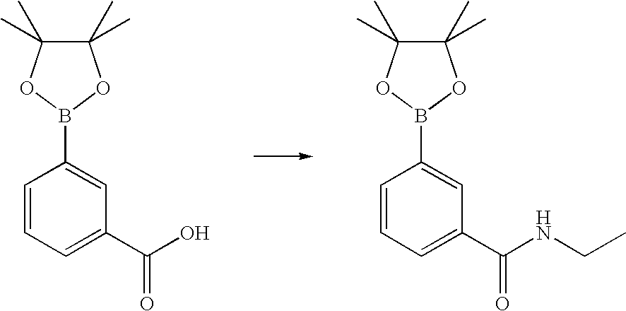 | 422 | | 1-[3-(7- [1,2,4]Thia- diazol-5-yl- imidazo[1,2- a]pyridin-3- yl)-phenyl]- 3-(2,2,2- trifluoro- ethyl)-urea hydrochloride | General route A steps A1-A3, procedure A3b using I6 [3-(4,4,5,5- Tetramethyl- [1,3,2]dioxaborolan- 2-yl)-phenyl]-3- (2,2,2-trifluoro- ethyl)-urea, procedure E2 and procedure E3c using U11 3- Bromo-[1,2,4]- thiadiazole. Procedure J1 | 1H NMR (400 MHz, DMSO-d6): 9.26 (1H, s), 9.13 (1H, s), 8.85 (1H, d), 8.62 (1H, s), 8.33 (1H, s), 7.87 (2H, d), 7.59-7.48 (2H, m), 7.37-7.28 (1H, m), 7.01 (1H, t), 4.01-3.90 (2H, m). | [M + H]+ 419 |