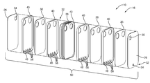 - Reinforcement of the device 10 may be by way of reinforcement portions 42 arranged between the contact regions 38 fixedly attached to the first end plate 26 , the second end plate 28 , and or the barrier plate 40 .