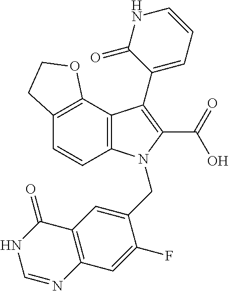 Diastereomeric mixtures can be separated into their individual diastereomers on the basis of their physical chemical differences by methods well known to those skilled in the art, such as, for example, by chromatography and/or fractional crystallization. Enantiomers can be separated by converting the enantiomeric mixture into a diastereomeric mixture by reaction with an appropriate optically active compound (e.g., chiral auxiliary such as a chiral alcohol or Mosher's acid chloride), separating the diastereomers and converting (e.g., hydrolyzing) the individual diastereomers to the corresponding pure enantiomers. Also, some of the Tricyclic Indole Derivatives may be atropisomers (e.g., substituted biaryls) and are considered as part of this invention. Enantiomers can also be separated by use of chiral HPLC column.