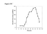 FIG. 9B is a graph showing isoprene production over time of fermentation of E. coli BL21/pTrcKudzu in a 14 liter fed batch fermentation.