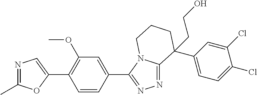 - TYZSJCRDLQKNAA-AREMUKBSSA-N 2-[(8r)-3-[3-methoxy-4-(2-methyl-1,3-oxazol-5-yl)phenyl]-8-(3,4,5-trifluorophenoxy)-6,7-dihydro-5h-[1,2,4]triazolo[4,3-a]pyridin-8-yl]propan-2-ol Chemical compound COC1=CC(C=2N3C([C@@](CCC3)(OC=3C=C(F)C(F)=C(F)C=3)C(C)(C)O)=NN=2)=CC=C1C1=CN=C(C)O1 TYZSJCRDLQKNAA-AREMUKBSSA-N 0.000 claims description 3