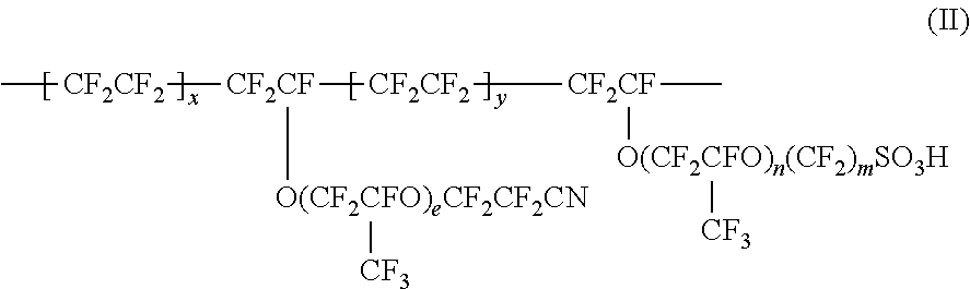 | US7074841B2 (en) * | 2003-11-13 | 2006-07-11 | Yandrasits Michael A | Polymer electrolyte membranes crosslinked by nitrile trimerization |