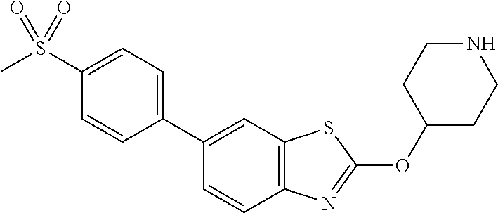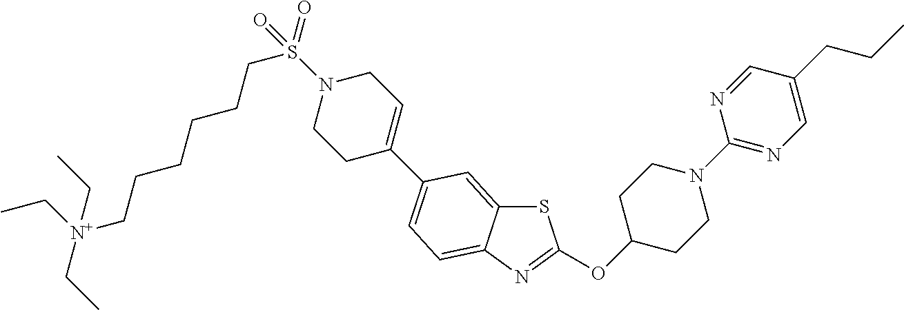 Particularly when provided as a single dosage unit, the potential exists for a chemical interaction between the combined active ingredients. For this reason, when the compound of the examples and a second therapeutic agent are combined in a single dosage unit they are formulated such that although the active ingredients are combined in a single dosage unit, the physical contact between the active ingredients is minimized (that is, reduced). For example, one active ingredient may be enteric coated. By enteric coating one of the active ingredients, it is possible not only to minimize the contact between the combined active ingredients, but also, it is possible to control the release of one of these components in the gastrointestinal tract such that one of these components is not released in the stomach but rather is released in the intestines. One of the active ingredients may also be coated with a material which effects a sustained-release throughout the gastrointestinal tract and also serves to minimize physical contact between the combined active ingredients. Furthermore, the sustained-released component can be additionally enteric coated such that the release of this component occurs only in the intestine. Still another approach would involve the formulation of a combination product in which the one component is coated with a sustained and/or enteric release polymer, and the other component is also coated with a polymer such as a low viscosity grade of hydroxypropyl methylcellulose (HPMC) or other appropriate materials as known in the art, in order to further separate the active components. The polymer coating serves to form an additional barrier to interaction with the other component.