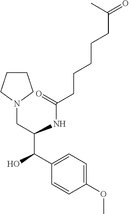 - KNSHXLCCYBPCEA-IFMALSPDSA-N COC1=CC=C([C@@H](O)[C@@H](CN2CCCC2)NC(=O)CCCCCC(C)=O)C=C1 Chemical compound COC1=CC=C([C@@H](O)[C@@H](CN2CCCC2)NC(=O)CCCCCC(C)=O)C=C1 KNSHXLCCYBPCEA-IFMALSPDSA-N 0.000 description 2