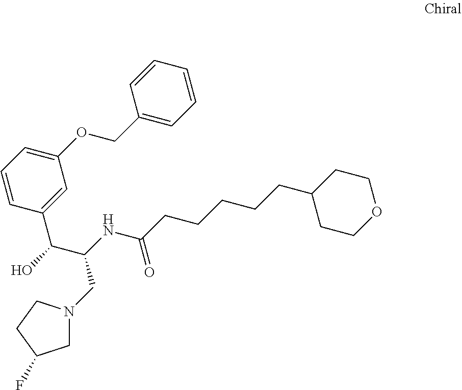 - INDZVVODUPKXPO-YQKLYGQBSA-N CC(C)OC1=CC=C([C@@H](O)[C@@H](CN2CC[C@@H](F)C2)NC(=O)CC2=CC=C(C3=CC=C(Cl)C=C3)C=C2)C=C1 Chemical compound CC(C)OC1=CC=C([C@@H](O)[C@@H](CN2CC[C@@H](F)C2)NC(=O)CC2=CC=C(C3=CC=C(Cl)C=C3)C=C2)C=C1 INDZVVODUPKXPO-YQKLYGQBSA-N 0.000 description 2