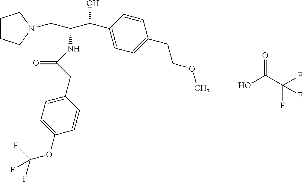 - XIUSHVDZJCGHTN-AOYPEHQESA-N COCCC1=CC=C([C@@H](O)[C@@H](CN2CCCC2)NC(=O)CCOC2=CC=C(OC)C=C2)C=C1.O=C(O)C(F)(F)F Chemical compound COCCC1=CC=C([C@@H](O)[C@@H](CN2CCCC2)NC(=O)CCOC2=CC=C(OC)C=C2)C=C1.O=C(O)C(F)(F)F XIUSHVDZJCGHTN-AOYPEHQESA-N 0.000 description 2