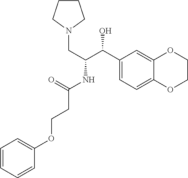 - YUJPQBLZOWKSOT-IOZGHAEBSA-N C[C@@H](NC(=O)C[C@H](CN1CCCC1)[C@H](O)C1=CC=C2OCCOC2=C1)C1=CC=CC=C1 Chemical compound C[C@@H](NC(=O)C[C@H](CN1CCCC1)[C@H](O)C1=CC=C2OCCOC2=C1)C1=CC=CC=C1 YUJPQBLZOWKSOT-IOZGHAEBSA-N 0.000 description 2