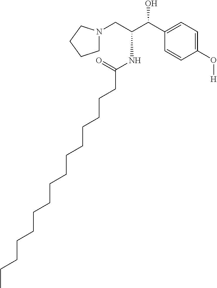 - CLNWNLAQIZVCHW-XRKRLSELSA-N [H]OC1=CC=C([C@@H](O)[C@@H](CN2CCCC2)NC(=O)CCCCCCCCCCCCCCC)C=C1 Chemical compound [H]OC1=CC=C([C@@H](O)[C@@H](CN2CCCC2)NC(=O)CCCCCCCCCCCCCCC)C=C1 CLNWNLAQIZVCHW-XRKRLSELSA-N 0.000 description 2