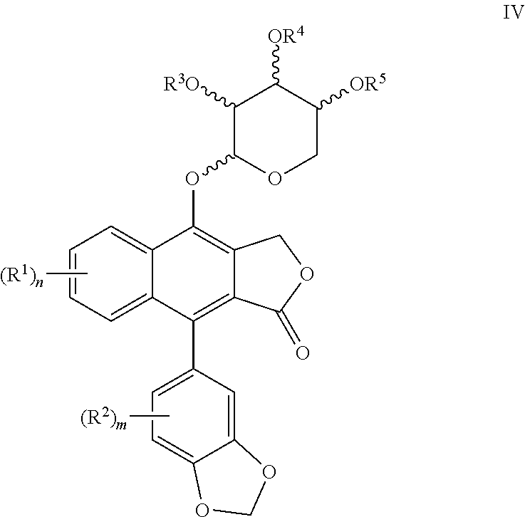 - (b) reacting said compound of formula III with a pyranose of formula V: