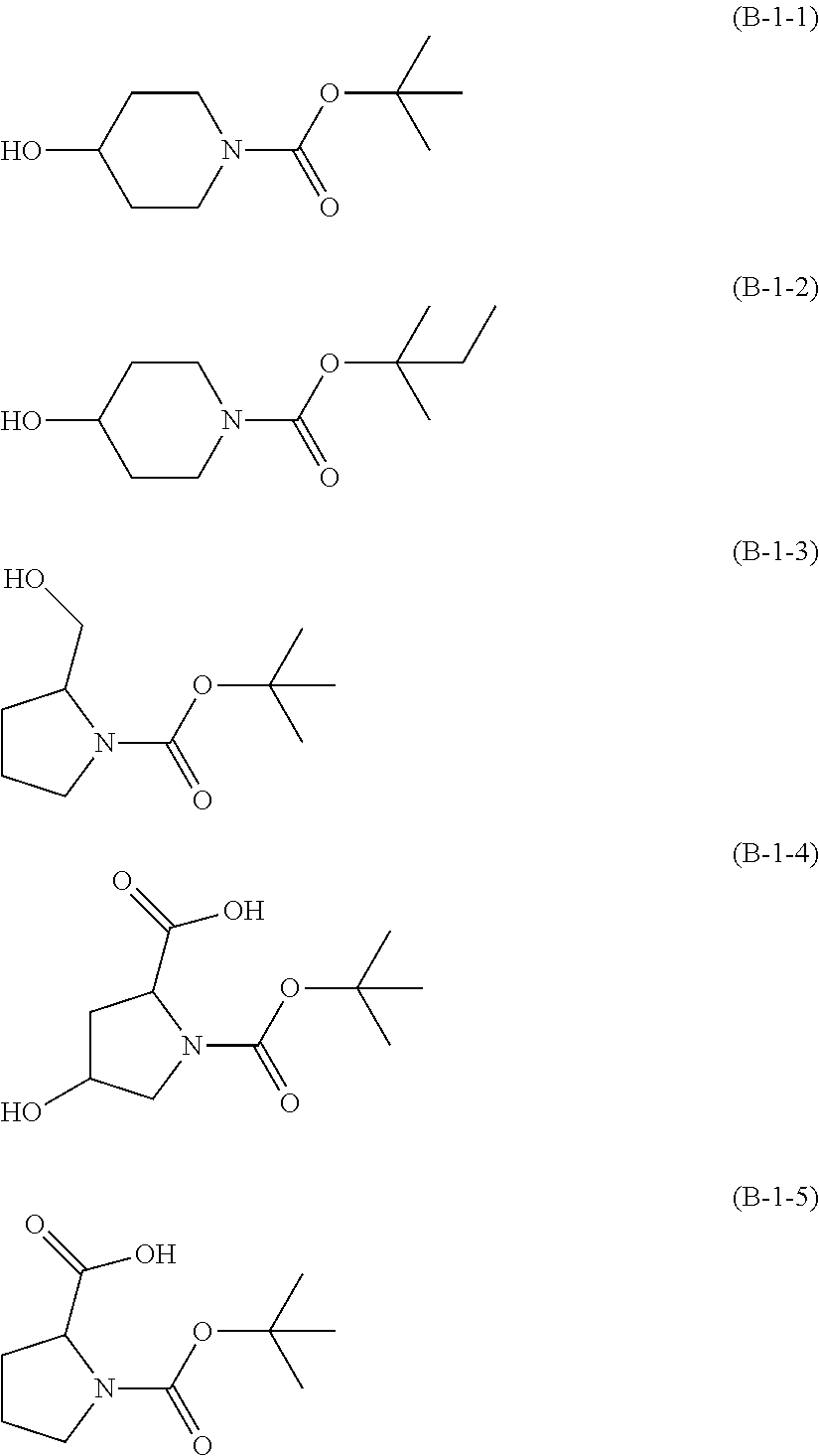 The cross-sectional shape of a 40 nm hole/80 nm pitch resist pattern was observed using a scanning electron microscope (“S-4800” manufactured by Hitachi High-Technologies Corporation). The hole diameter Lb at the bottom of the resist pattern and the hole width La at the top of the resist pattern were measured. A case where “0.9≦(La/Lb)≦1.1” was satisfied was evaluated as “A”, and a case where “0.9≦(La/Lb)≦1.1” was not satisfied was evaluated as “B”. The pattern shape evaluation results are shown in Table 8.