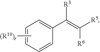 - R3, R4, R5, and R6 are independently selected from the group consisting of H, C1-18 alkyl, C2-18 alkenyl, C2-18 alkynyl, optionally substituted C6-10 aryl, optionally substituted C1-C6 alkoxy, halo, hydroxy, cyano, C(O)N(R7)2, NR7C(O)R8, C(O)R8, C(O)OR8, and N(R9)2,