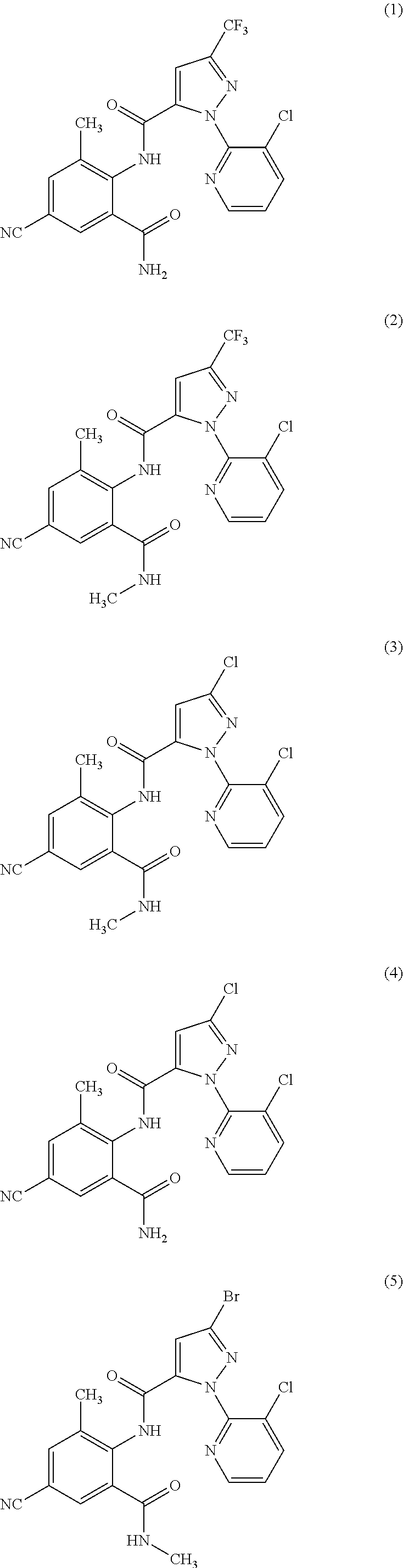 The phytoparasitic nematodes include, for example, Anguina spp., Aphelenchoides spp., Belonoaimus spp., Bursaphelenchus spp., Ditylenchus dipsaci, Globodera spp., Heliocotylenchus spp., Heterodera spp., Longidorus spp., Meloidogyne spp., Pratylenchus spp., Radopholus similis, Rotylenchus spp., Trichodorus spp., Tylenchorhynchus spp., Tylenchulus spp., Tylenchulus semipenetrans, Xiphinema spp.