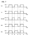 On the other hand, in the second operation, the logic circuit 12 inputs the PWM signal Vp1 as it is to each of the gates of the PMOS 14 a, the NMOS 14 b, the PMOS 16 a, and the NMOS 16 b. Accordingly, in the second operation, as shown in FIG. 7, the signal Vr1 has the same waveform as the PWM signal Vp1. Since the inverting circuit 14 inverts the input signal Vr1 and outputs the inverted signal to the terminal 28, the signal V28 output to the terminal 28 is a signal obtained by inverting the PWM signal Vp1. Likewise, since the inverting circuit 16 inverts the input signal Vr2 and outputs the inverted signal to the terminal 30, the signal V30 output to the terminal 30 is a signal obtained by inverting the PWM signal Vp1.