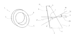 The system exhibits an outer face which is not contained in a plane that is substantially normal to the prioritized optical direction 20. This outer face can thus be inclined or otherwise with respect to the prioritized optical direction, flat or otherwise, etc. Several example outer faces will be described hereinafter with reference to the drawings.