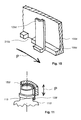 FIG. 9 shows two detailed sectional views of the closure mechanism of the cosmetics container from FIG. 8.