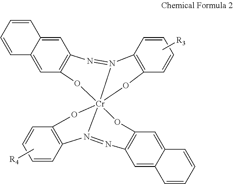 wherein A1, A2, A3, and A4 each independently represent a C1 to C10 alkyl group, —CN, —PO3H2, —C(O)OH, or a hydrogen atom, m is an integer of 1 to 10, and optionally wherein at least one —CH2— of R1 and R2 if present is independently replaced with —O—, —C(O)—, —C(O)O— or —OC(O)—.