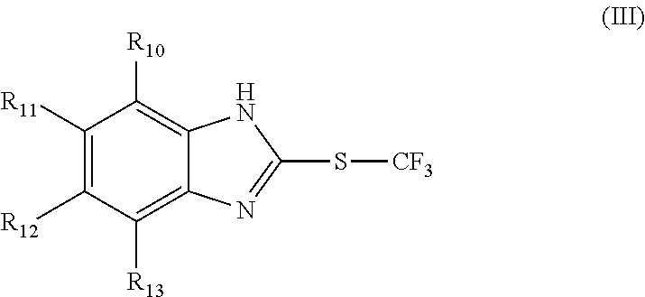 - UQNONCMRNJUIPT-UHFFFAOYSA-N 6-chloro-5-(2,3,5-trichlorophenyl)-2-(trifluoromethyl)-1h-benzimidazole Chemical group C1=C2NC(C(F)(F)F)=NC2=CC(Cl)=C1C1=CC(Cl)=CC(Cl)=C1Cl UQNONCMRNJUIPT-UHFFFAOYSA-N 0.000 claims description 5